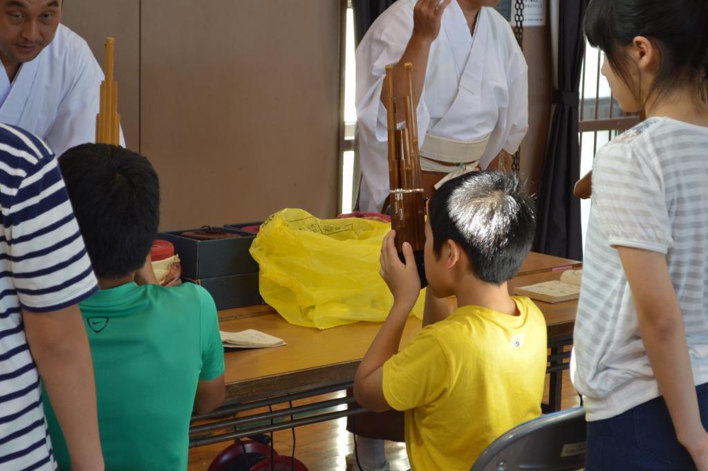 今年度第1回目は習志野市の谷津南小学校です。 ここはラムサール条約登録地「谷津干潟」が目の前に広がる環境に恵まれた学校です。 6年生、65名を対象に管絃「平調越殿楽」と舞楽「迦陵頻」の鑑賞を行い、楽器体験も併せて行いました。 千葉日報の記事を読む