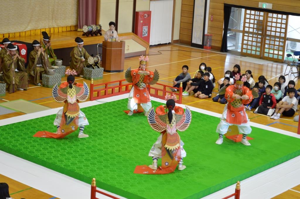 ② 初めて雅楽を聞きましたが、それぞれの楽器の個性がでていて、とても癒されました。体験では、叩いたり、息を入れたり、指でならしたり、いろいろな方法がありました。どれも難しかったけれども楽しかったです。
