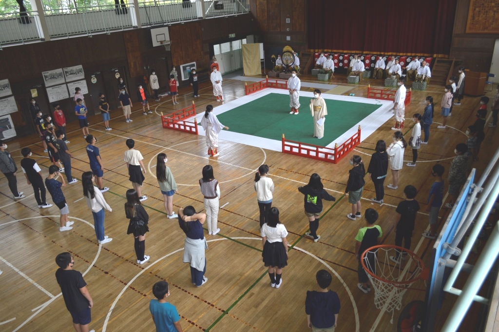 ① 子供たちは、初めて聞く「雅楽」や体験した「舞楽」に感動したり、1000年以上も続いてきたことに驚きました。特に練習した後に音楽に合わせて踊れたことは、よい体験になったようです。貴重な体験になりました。