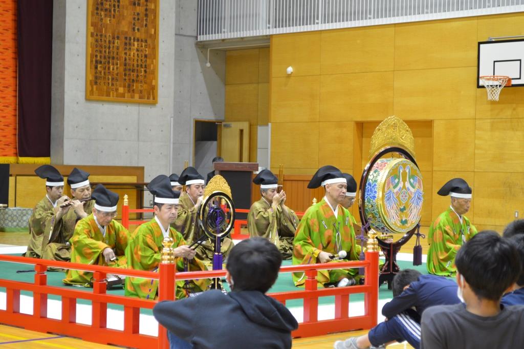 ① 楽器には、天の音と地の音、天と地の間の音が交ざり、今までに聞いたことのない音になっていました。この伝統芸能が千数百年前から続いていることに驚きました。なぜなら、今聞いている音楽や舞が、そのままのかたちで続いているということを知ったからです。なので、このような伝統芸能は大切にしていかなければいけないと思いました。