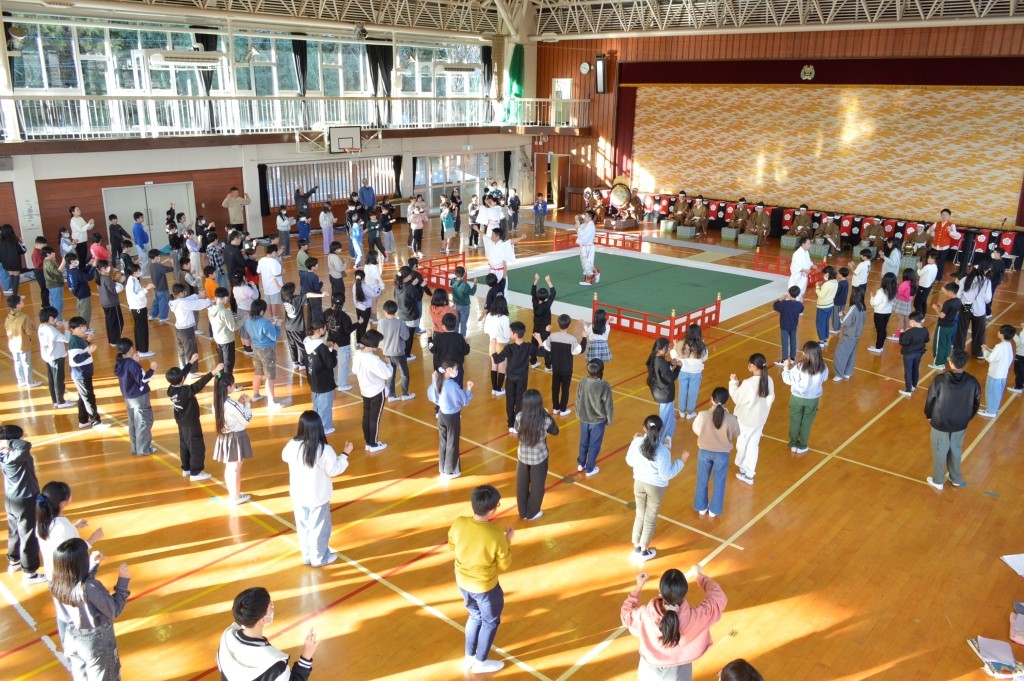 4~6年生177名が鑑賞と舞楽体験を行いました