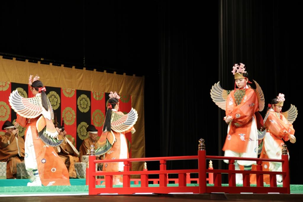 演 目:管絃「平調音取」「越殿楽」「陪臚」、楽器紹介、舞楽「迦陵頻」「甘州」