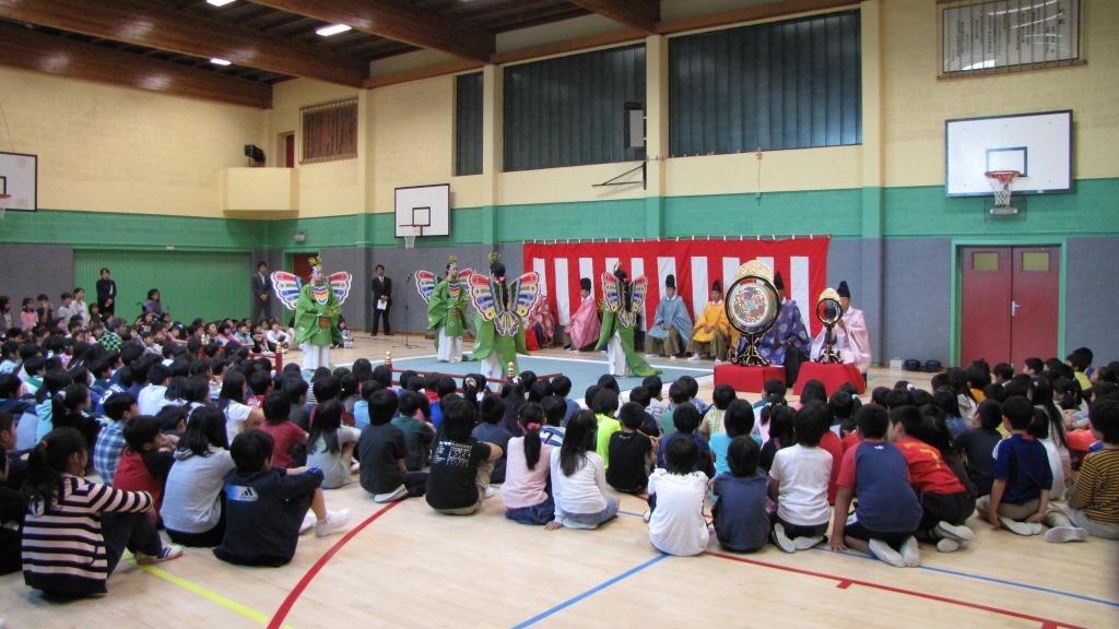 鑑賞会では管絃「平調音取」「越天楽」、舞楽は舞楽「胡蝶」を演奏。他にも舞の手の講習や楽器体験なども併せて行いました。