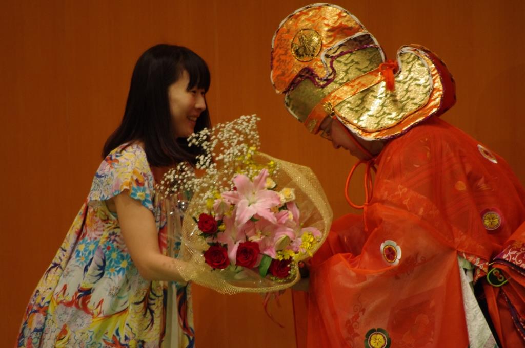 今回もベルギー公演に続き、宮内庁式部職楽部、元・首席楽長の安齋省吾先生に特別出演をお願いし、龍笛、鞨鼓の演奏と、公演の最後に神楽笛の「朝倉音取」の独奏をしていただきました。