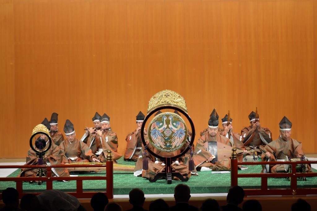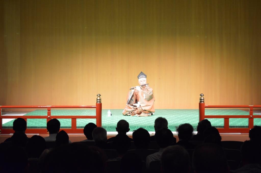 続いて、第二部では、本年7月に日本・オーストリア修好150周年及び日本・ポーランド国交樹立100周年記念事業として実施されたオーストリア・ポーランド雅楽公演で演奏した演目より、管絃「黄鐘調音取」「千秋楽」「西王楽破」及び、舞楽「北庭楽」を紹介しました。最後に、安齋省吾先生による笛の独奏として、御神楽より「庭燎(にわび)」を演奏いただきました。「今日の雅楽は、とても澄んだ音色で、心が落ち着く素晴らしい演奏でした」と、多くの方々に好評でした。