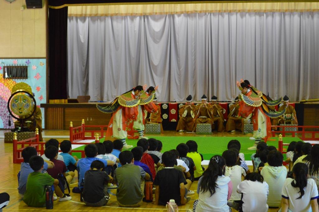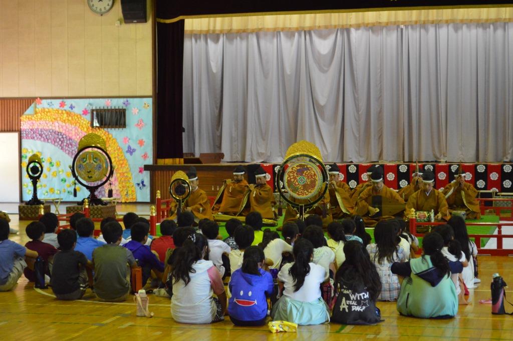 ② 当日の素晴らしい舞台と装束に圧倒され、職員一同感激致しました。演奏や舞、体験学習とプログラムも充実していて有意義な時間でした。他学年の先生も参加していましたが、「こんな素晴らしい学習ができるなんて幸せだ」「私たちも勉強になりました」という感想も聞かれました。