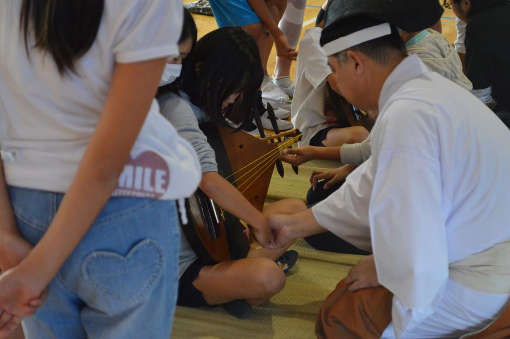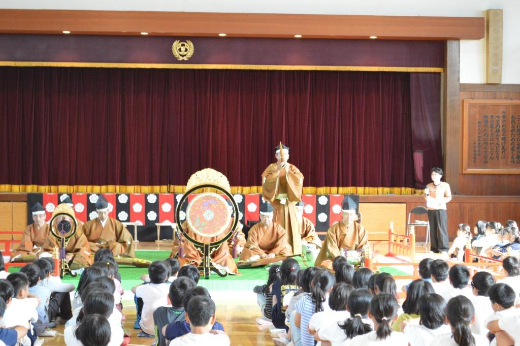 本格的な舞台や装束にも圧倒され、児童のみならず教職員一同も大変感激しました。さらに、楽器を実際に 弾いてみることが児童にとってかけがえのない体験になったようで、今でも「もっと練習したかった!」「またやりたい!」という声をよく聞きます。