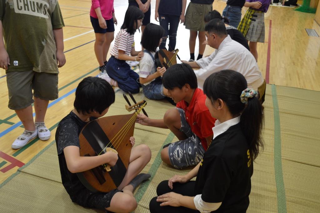 ③ 子供たちは、それぞれに楽器を体験し、演奏することの難しさを体験したようです。実際に体験し、聴くのと演奏するとの違いを感じていました。なかなか音の出ない楽器もあったようですが、演奏者の指導により音を出すコツを教えてもらい、音が出る喜びを感じていました。