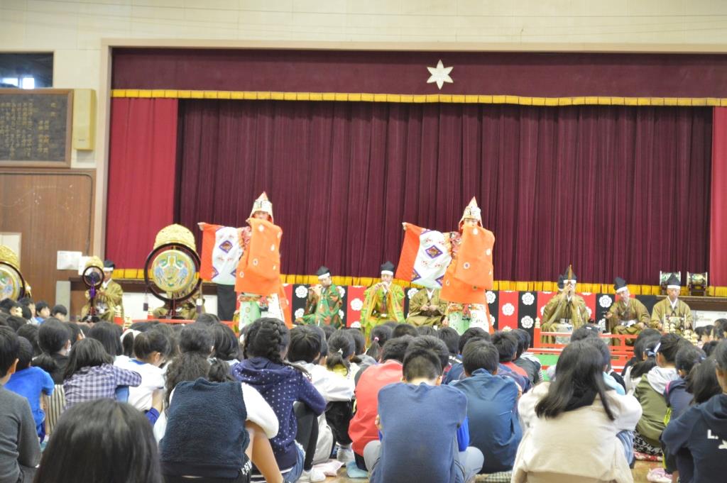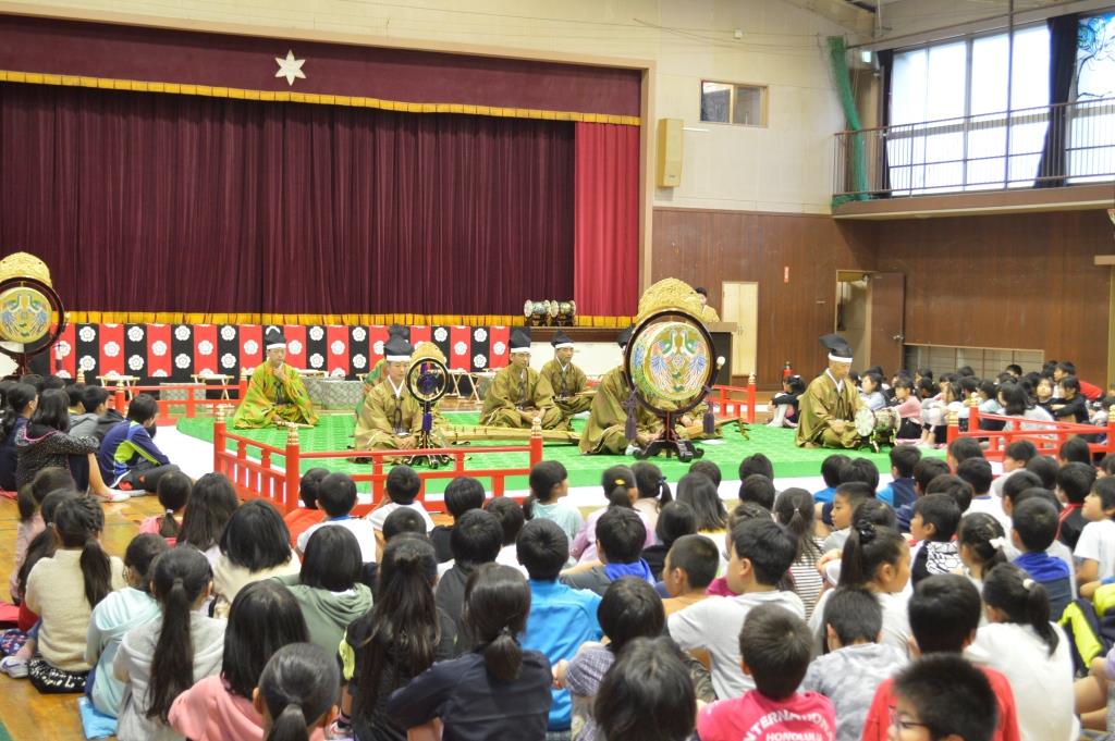 今回の鑑賞会を前に、この経験は一生に一度きりの人もいるかもしれない、という話を児童にしました。そのような貴重な機会を与えられていることに感謝しつつ楽しんでほしかったのです。あれだけの楽器や衣装、舞台セットを用意して学校を回られるのは大変なことと思いますが、今後も伝統芸能を通して子どもたちに、日本の良さや歴史を感じさせる時間を与えていただきたいと思います。