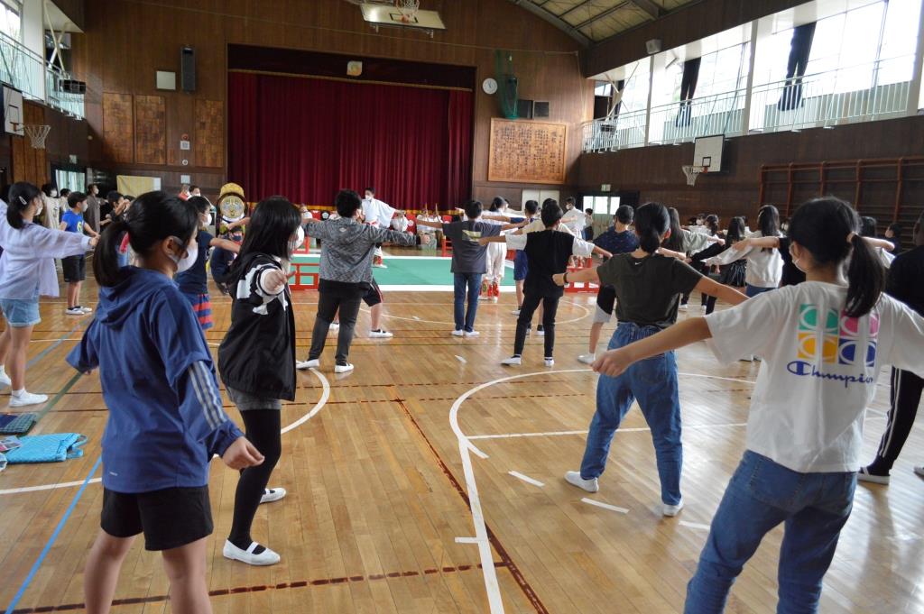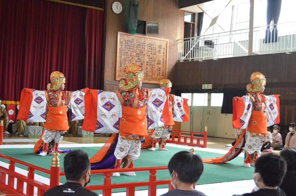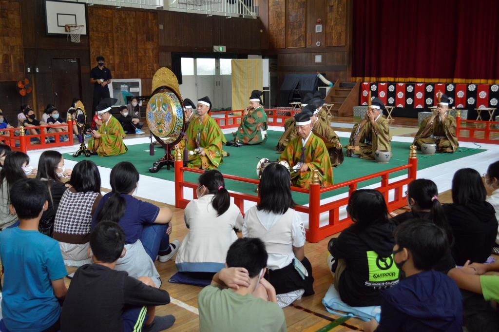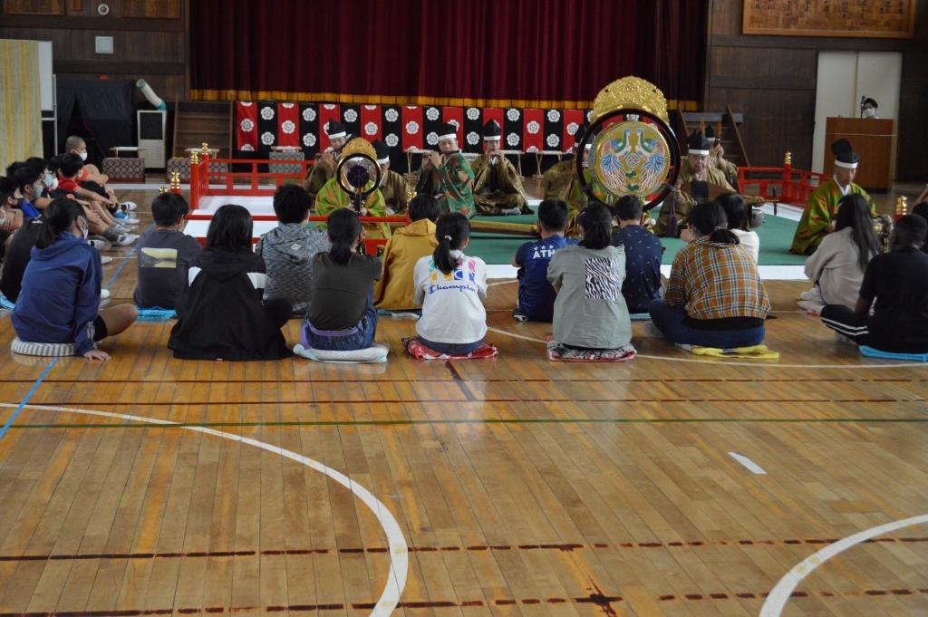 ① 子供たちは、初めて聞く「雅楽」や体験した「舞楽」に感動したり、1000年以上も続いてきたことに驚きました。特に練習した後に音楽に合わせて踊れたことは、よい体験になったようです。貴重な体験になりました。