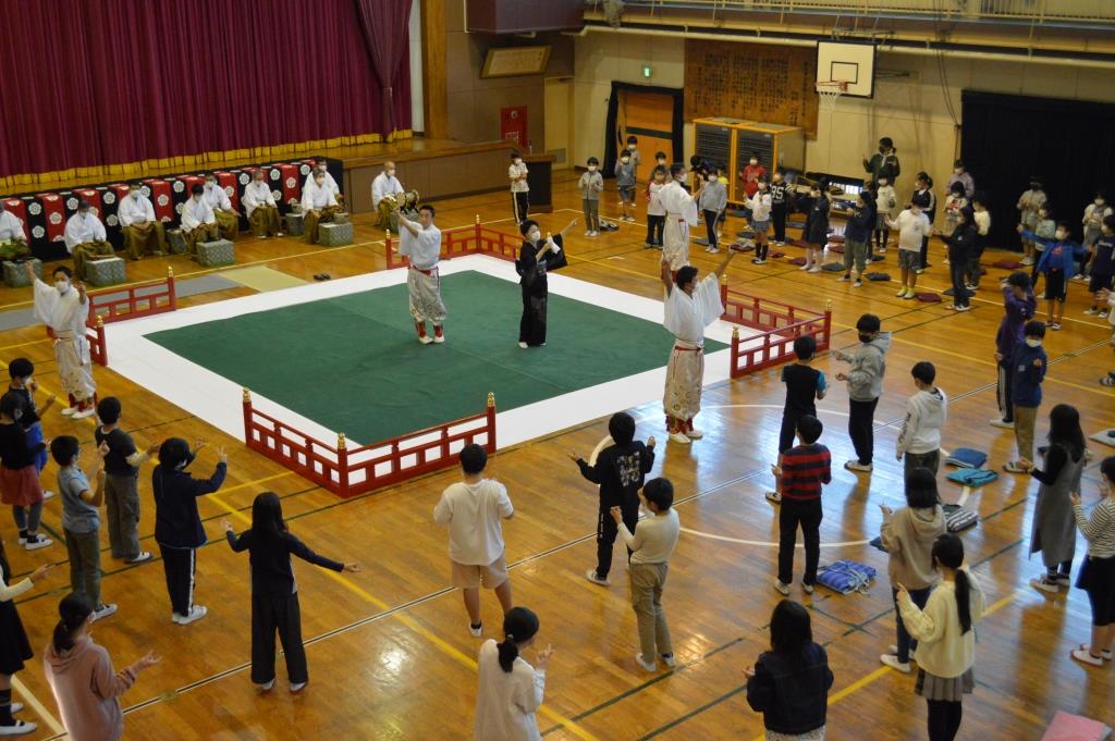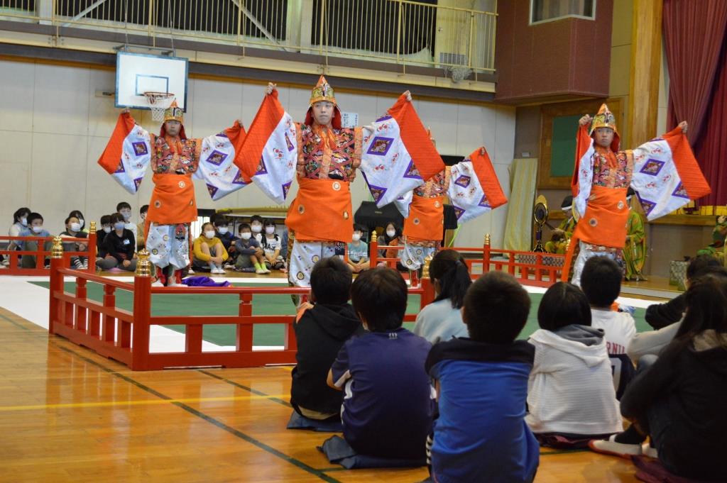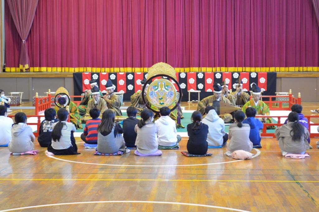 本格的な雅楽に触れることができました。稲越小の体育館がタイムスリップしたような感じでした。