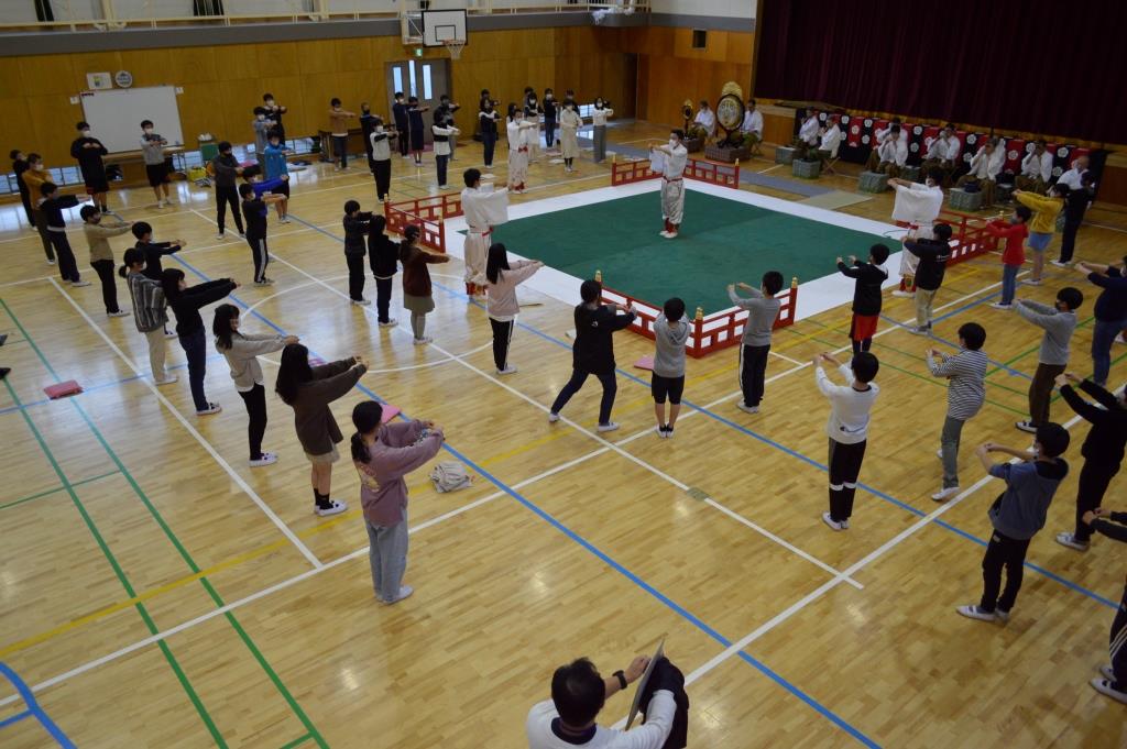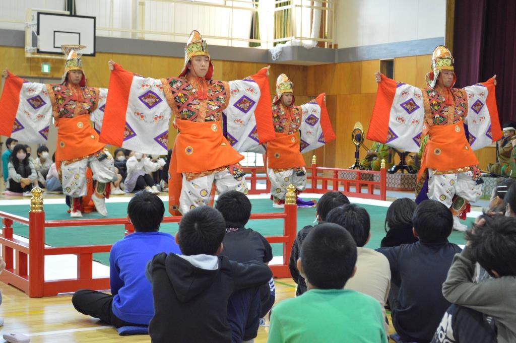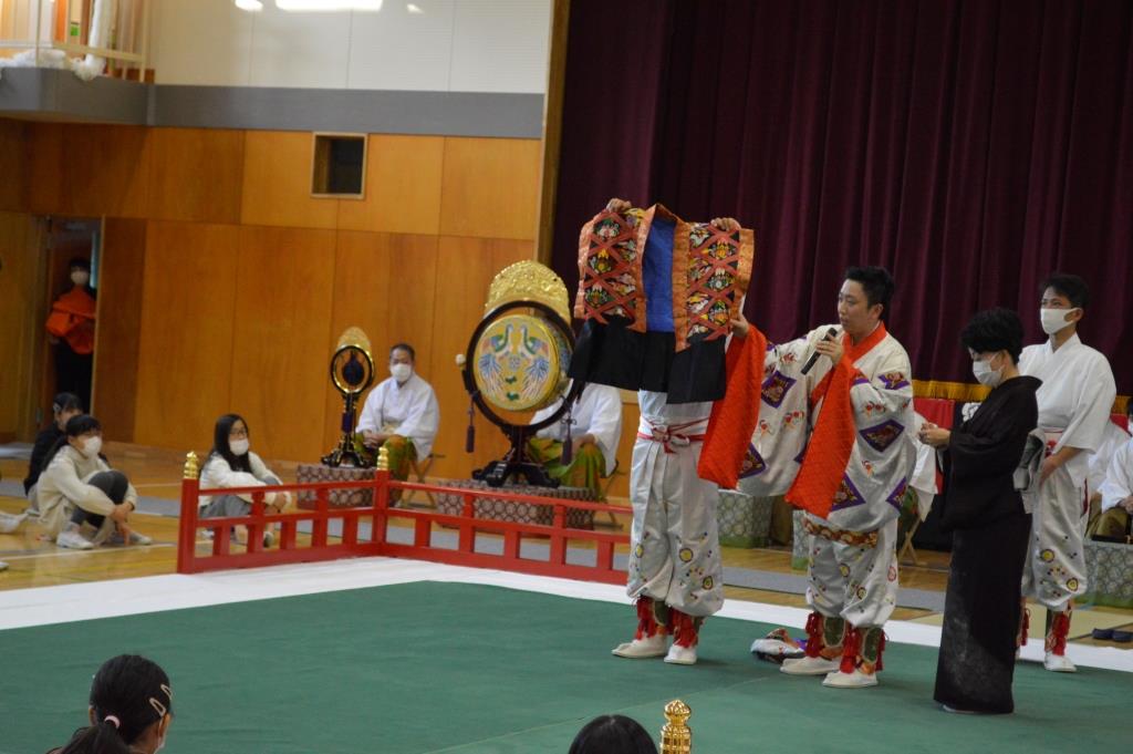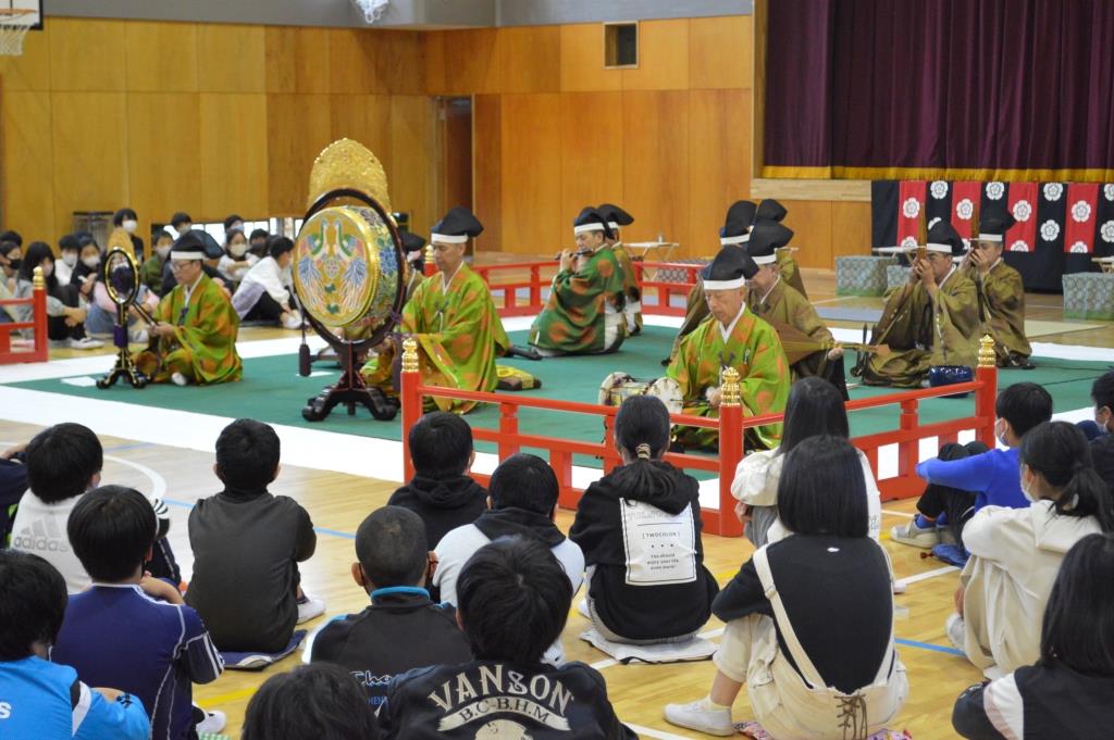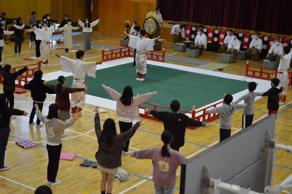 ② 見たことのない楽器はあり、一つ一つの楽器でいろいろな音が合って、とても迫力のある演奏に感動しました。舞も優しく教えていただき、覚えることができました。これから先、一生見ることが出来ないかもしれない演奏を見せていただき有難うございました。