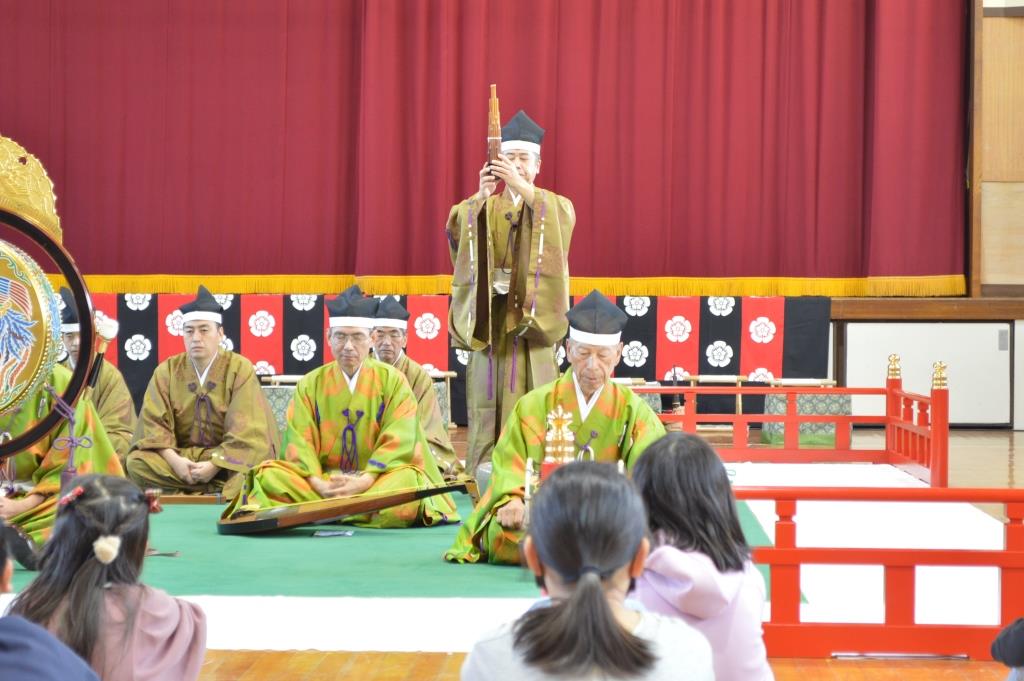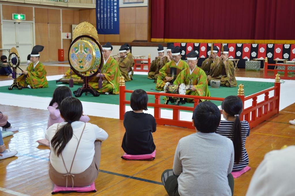 ⑤ 体育館があのよう な雅楽と舞いを見せていただける場に変わって、一気に圧倒された。様々な年代の方が携わっていて、伝統的な音楽が受け継がれていることを感じた。