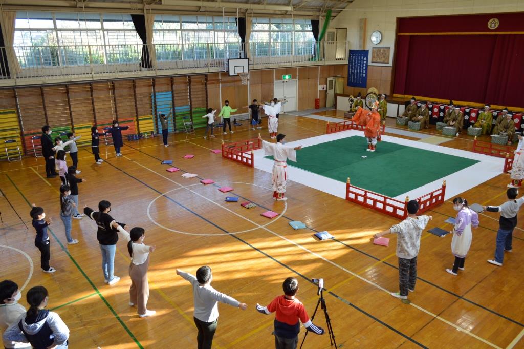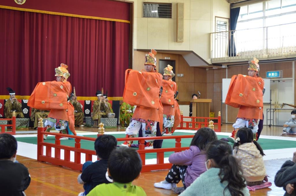 ① 伝統芸能にふれる貴重な経験となった。1・2年生の鑑賞、3~6年はそれに加えて体験もできてよかった。可能であれば踊りの体験ではなく、楽器の体験ができると尚よかった。