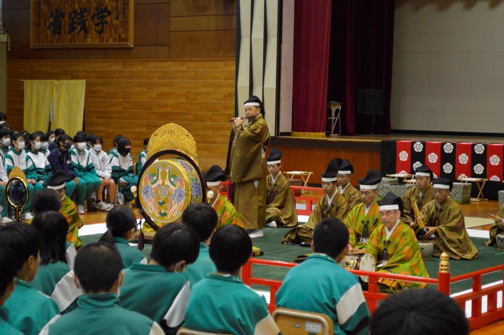 ② 平安時代という、とても昔の時代にできたものが今までずっと伝承されていてすごいと思いました。またその時代からけっこうな種類の楽器があったことに驚きました。雅楽はゆっくりとしたリズムと高い音で演奏されていて長く聞いていられると感じました。