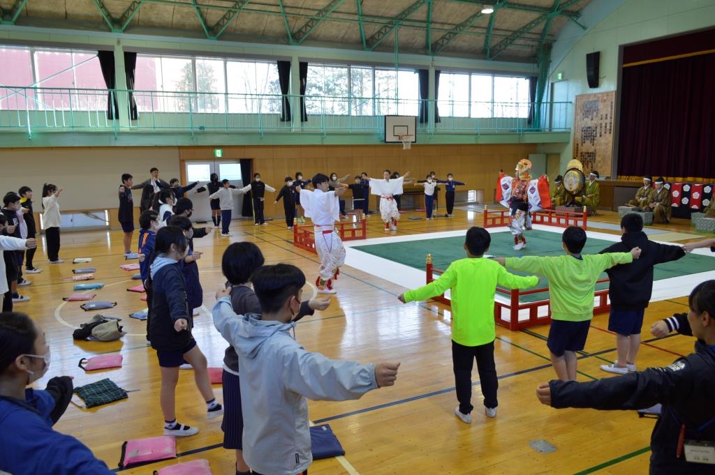 ⑥ 舞楽体験は最初難しかったけど、やさしく教えてくれたので上手にできました。