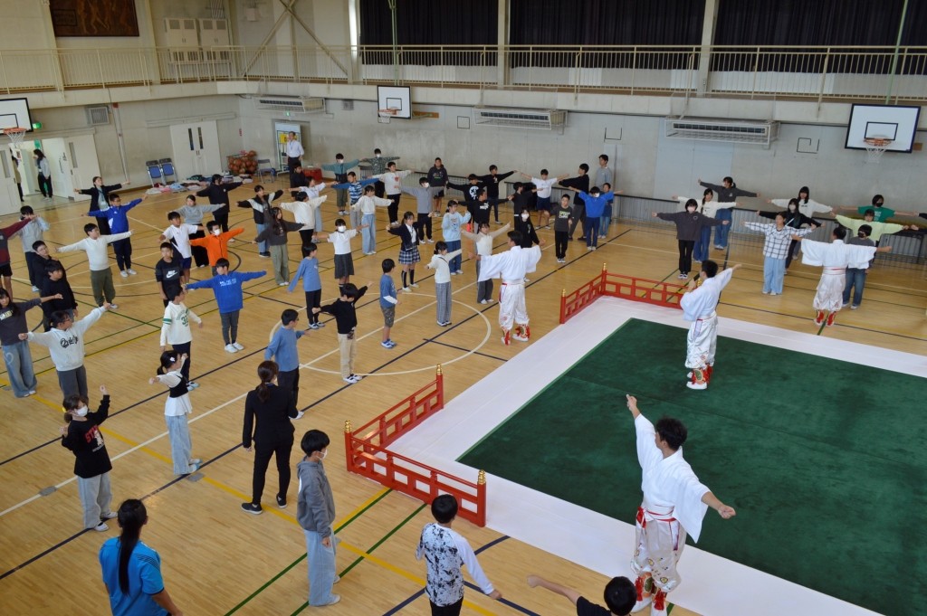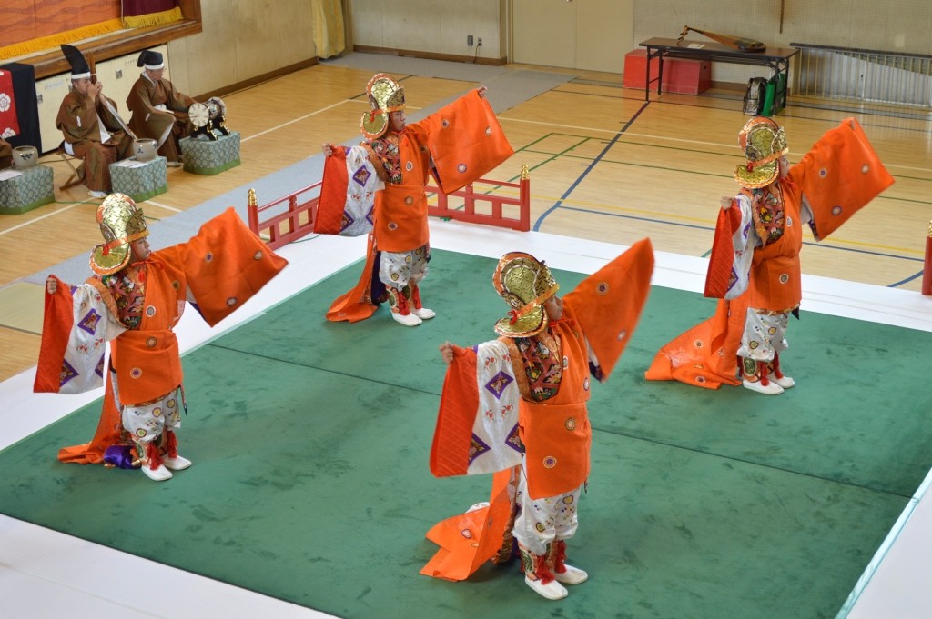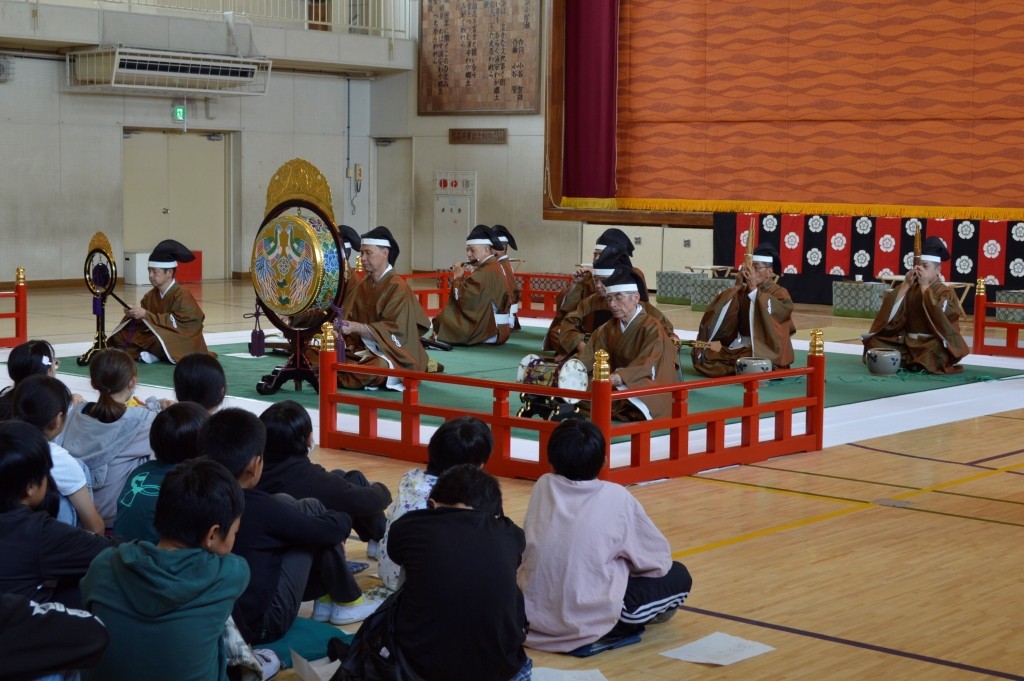 ③ 演奏も指揮者がいないのにリズムも踊りも合っていてすごかったです。越殿楽今様の時にお手本で歌ってくれたひなたさんの声が体育館ですごく響いていてすごかったです。