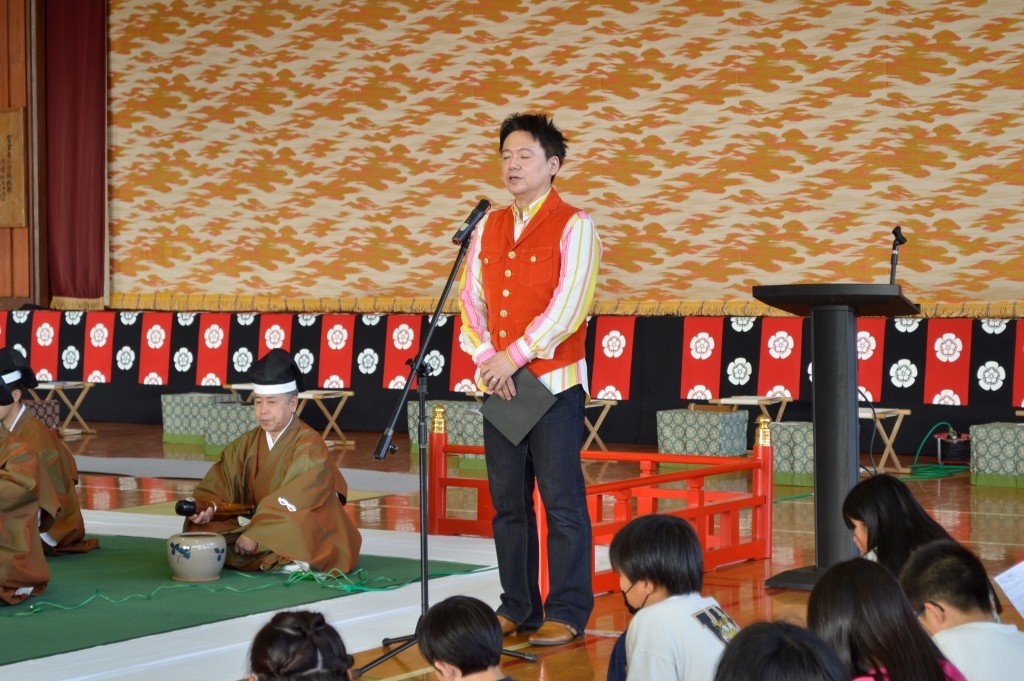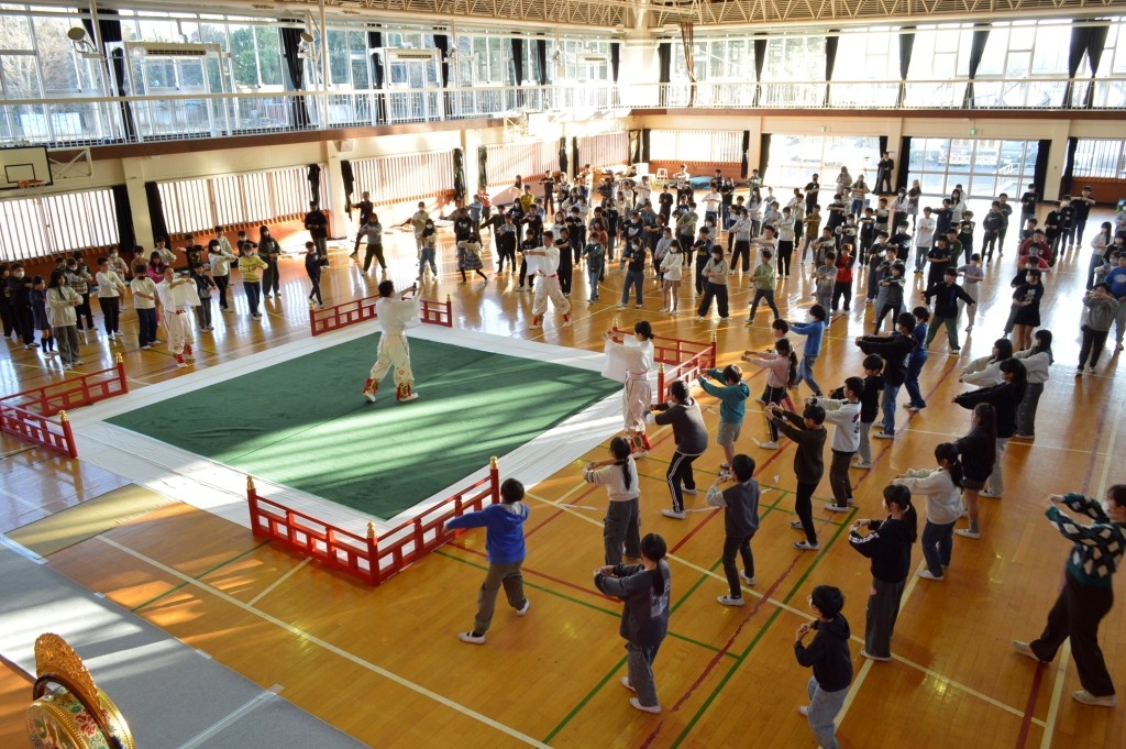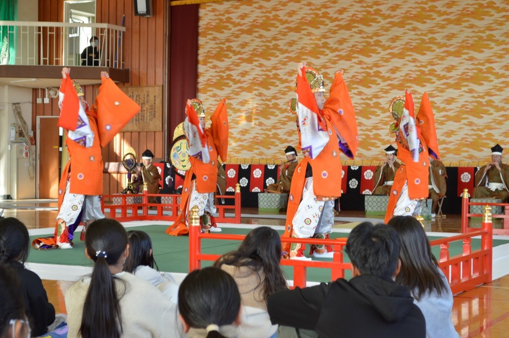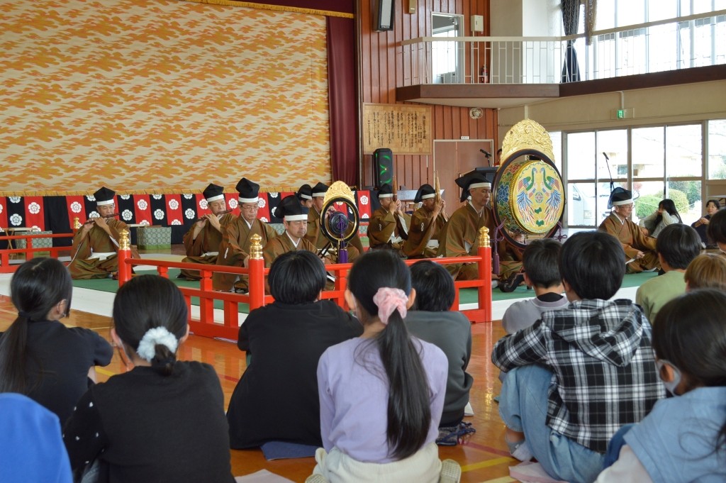 4~6年生177名が鑑賞と舞楽体験を行いました