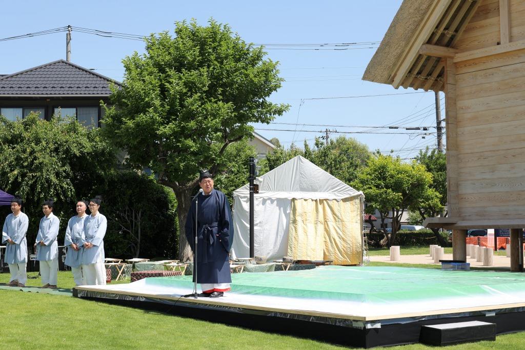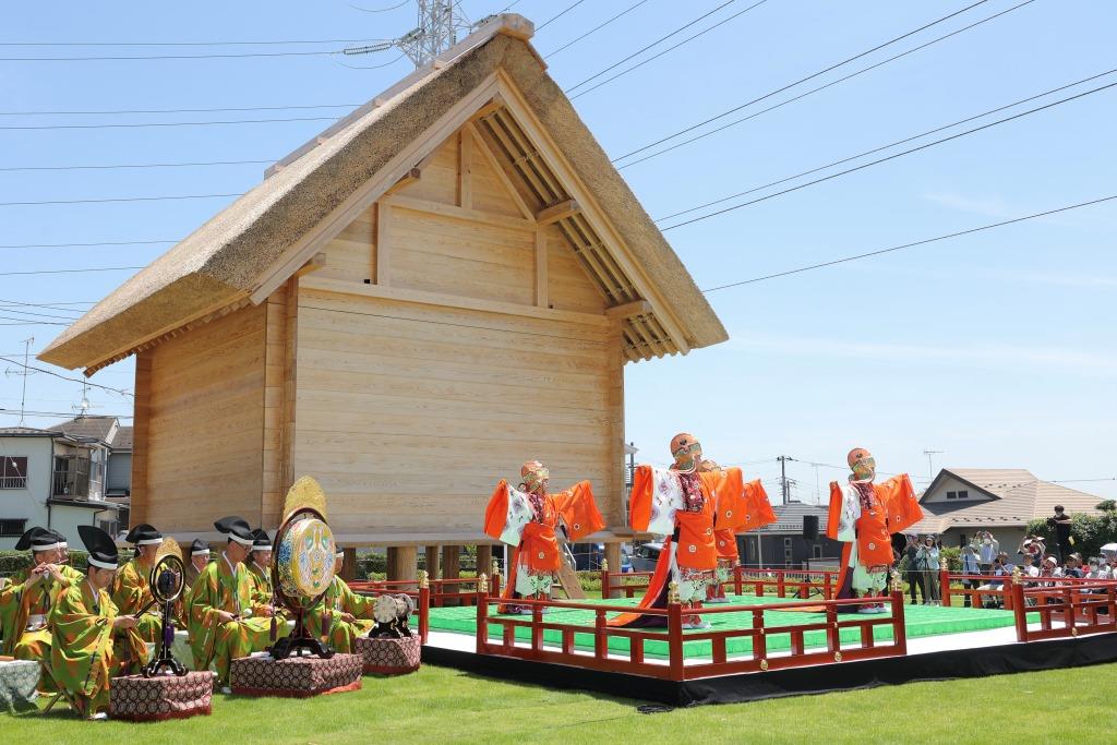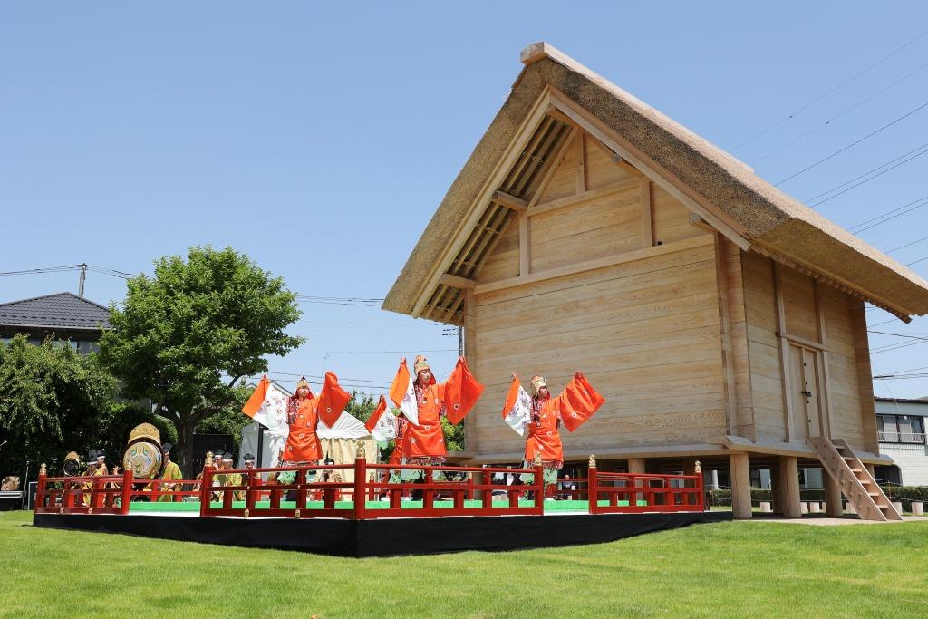 式典では、郡の長官「橘樹郡司」に扮した古代衣装姿の福田紀彦市長が挨拶され、奈良時代の重要な施設だった高床の倉庫に鍵をかけることで歴史公園のオープンを宣言する「閉封の義」も実施されました。