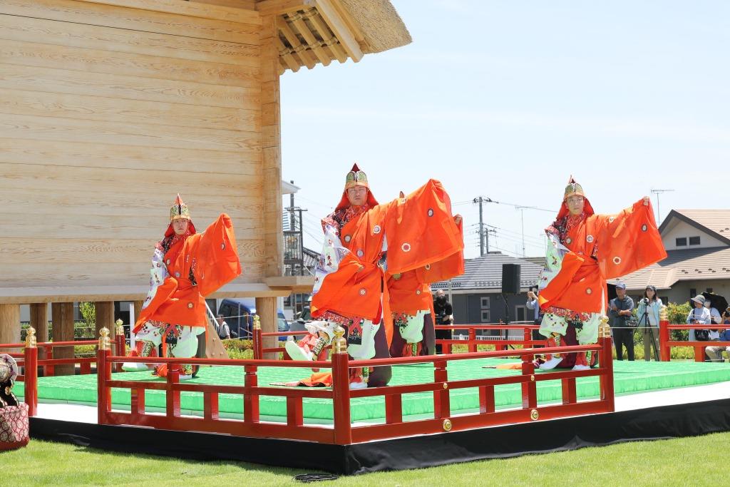 当アンサンブルは令和5年9月の立柱式に続き、このオープニング記念式典にも参加し、古来より建造物の落成を祝うおめでたい曲である舞楽「賀殿」を披露しました。
