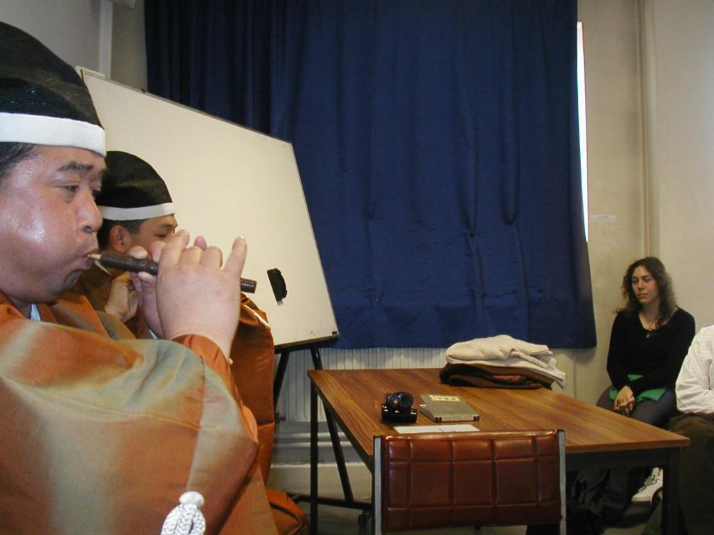 フランス国立東洋言語文化学院で雅楽を教えている先生より、大使館を通じて演奏の依頼がありましたた。日本語を学ぶ学生を対象に約1時間の雅楽紹介を行ないました。(龍笛・篳篥の二管)