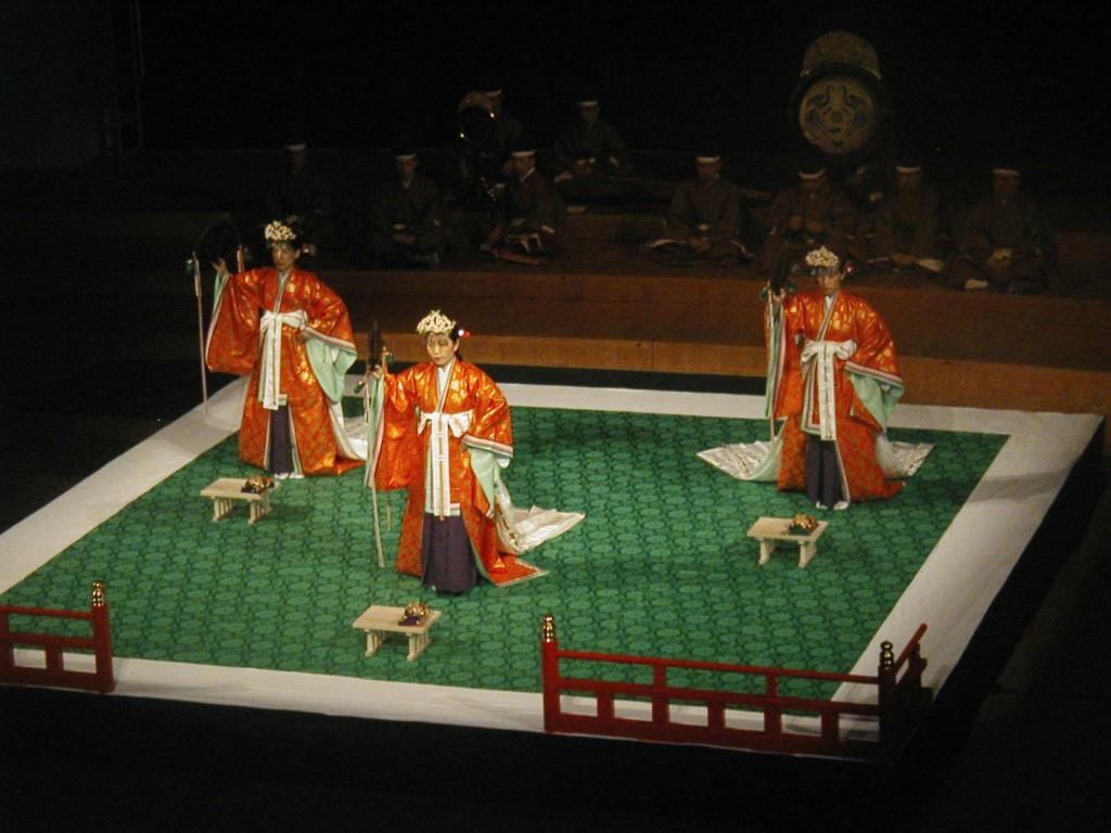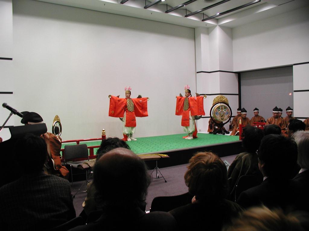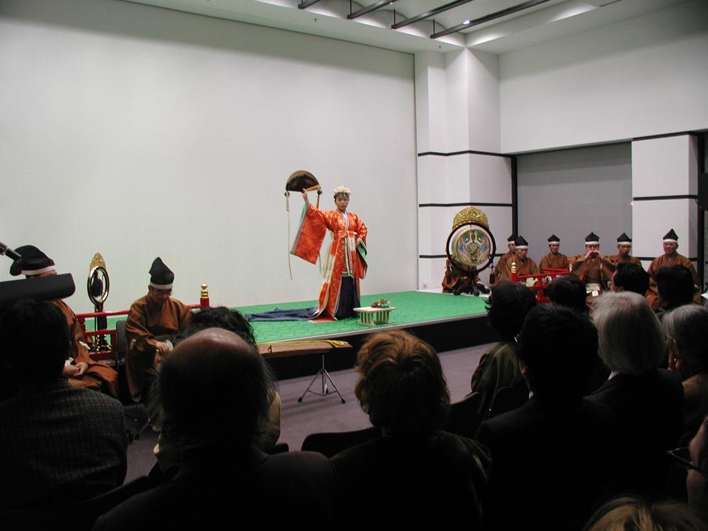 管絃「平調音取」「越殿楽」「陪臚」、舞楽「迦陵頻」「浦安の舞」、楽器紹介