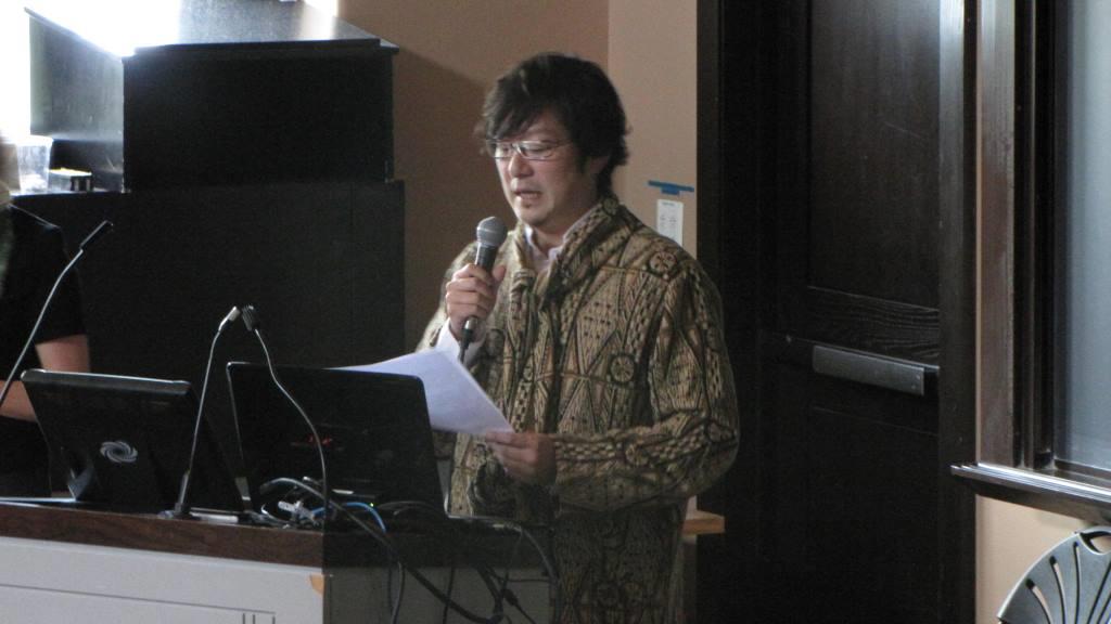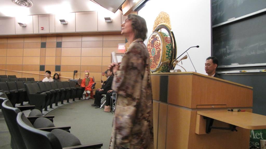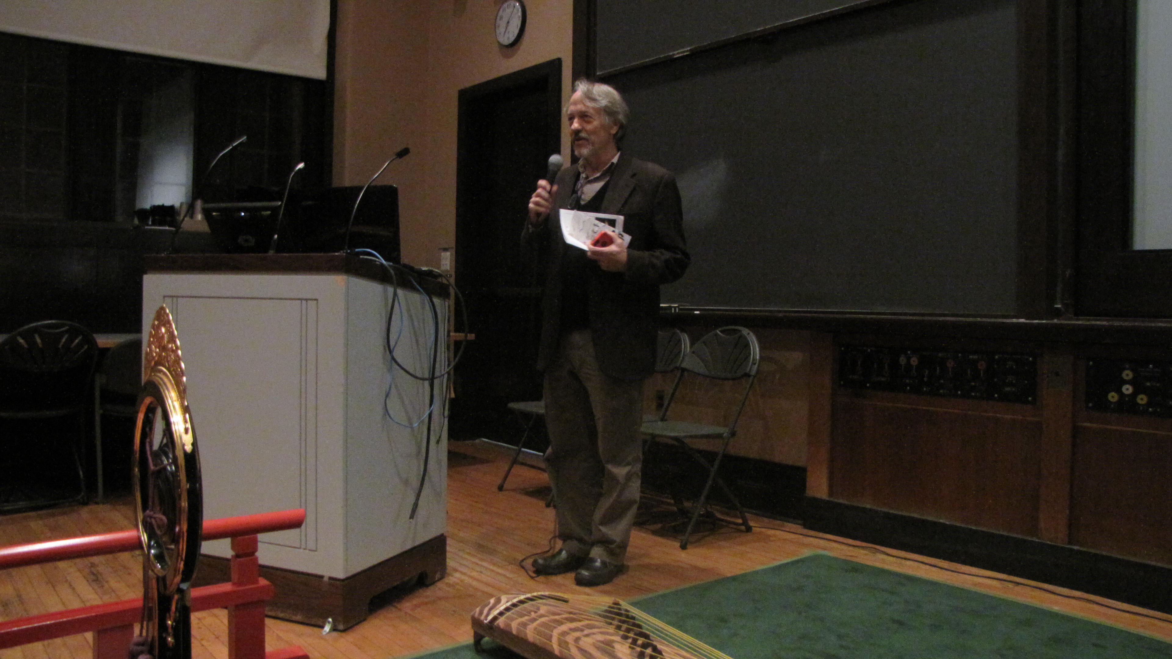 公演はデヴィ教授の挨拶、次いで五大学東アジア研究所所長のアン・プレスコット教授の雅楽説明より始まりました。