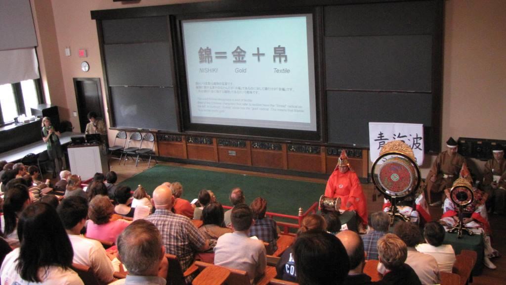 さらに、京都の錦織作家・龍村周氏による錦織レクチャーも併せて行われ、錦織や青海波の衣装に関する説明も行われ、来場者の興味を大いに引いた公演となりました。