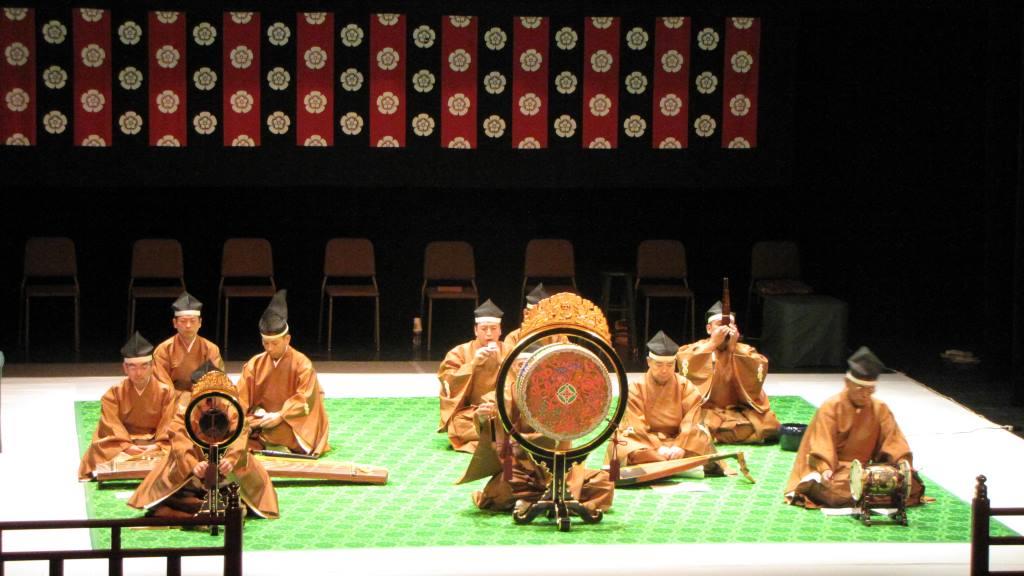 同大学のフリスト・キャンパス・センターにて、11日、12日の二日間において公演が行われました。200名入る会場はほぼ満席で、雅楽や日本文化に対する関心の高さが伺えました。また、同校は海外における日本語教育のモデル校にも指定されており、今回の公演には多くの日本人教育関係者にもご来場頂きました。