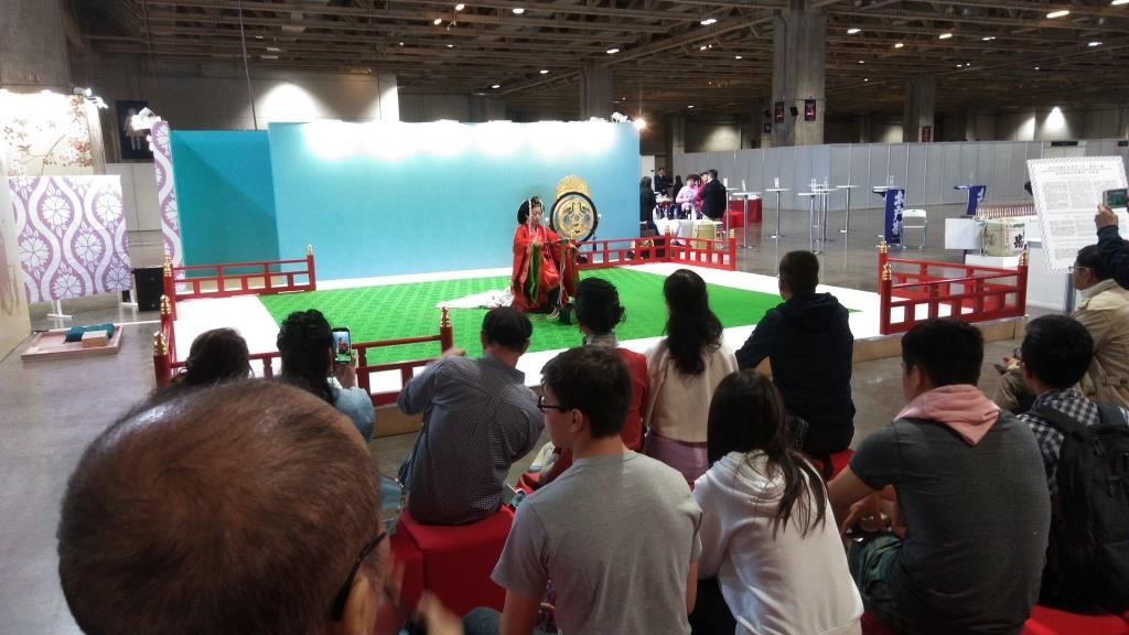 会場となったザ・ヴェネチアン・ホテルのカンファレンス・ルームは広さが1.3万平方メートルもある巨大な空間で、中国の美術品や文化を展示するブースの他に、日本ブースが設けられここに舞台が設えられました。