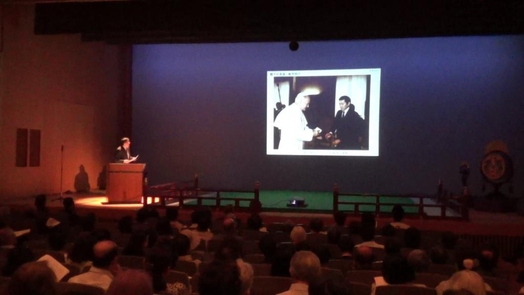 『欧州連合の現況と外交活動、並びに皇室の御活動とその役割』をテーマに講演は行われ、1時間という限られた時間の中ではありましたが、配布資料及びスライドを用い多くの観衆の関心を集めました。ルクセンブルク大公国の紹介から始まり、現在EUが抱える諸問題を分かりやすく解説。また元東宮侍従長として、日頃触れることのできない皇室のご活動について、特に伝統文化の保護と継承に果たす皇室の役割なども説明していただき、大変有意義なご講演となりました。