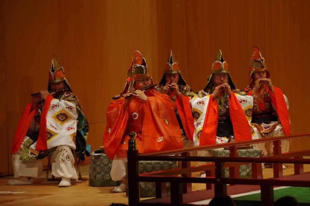 第2部の雅楽では、本年1月の日本ベルギー修好150周年記念公演で披露した舞楽「陵王」と「甘州」を当アンサンブルが演奏しました。