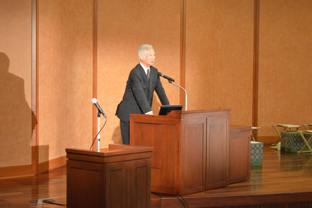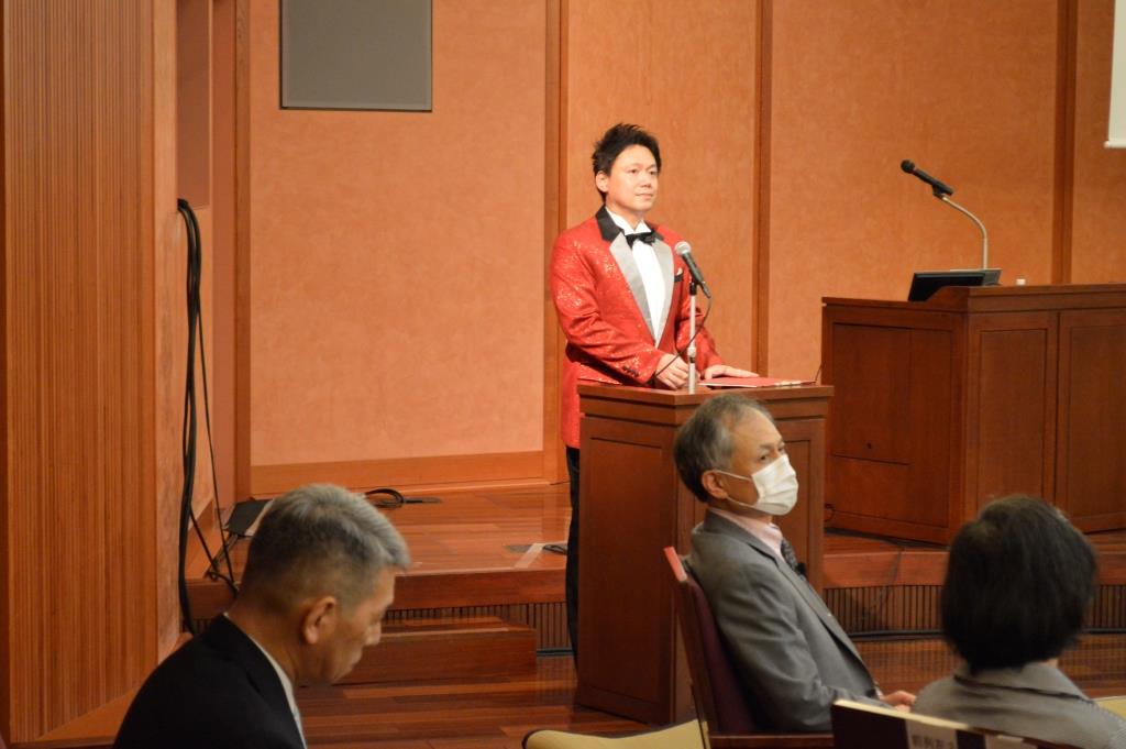 冒頭、主催者である井口陽一郎・公益社団法人北之台雅楽アンサンブル理事長より挨拶。「世界の和音によるコロナ収束を願う」本公演の趣旨を強調され、開催に尽力いただいた関係者及び参加者への謝意が述べられました。